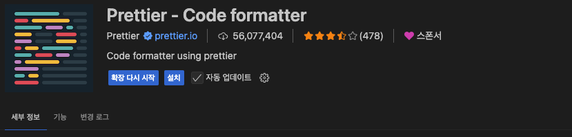 - Prettier – 코드 정렬의 신. 저장하면 코드가 이뻐짐.