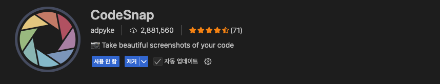 - CodeSnap – 코드 스크린샷 찍는 확장자. 감성 + 블로그용으로 꿀.