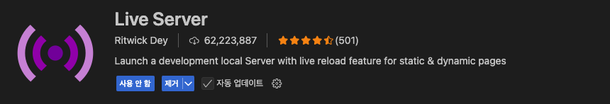 - Live Server – HTML 실시간 미리보기. 저장하면 자동 새로고침됨.